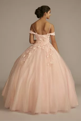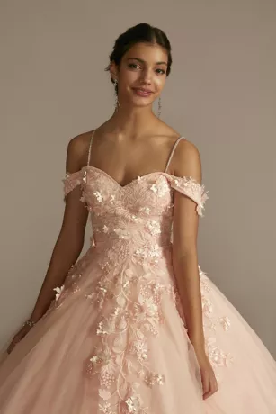 3D Floral Quince Gown With Detachable Sleeves