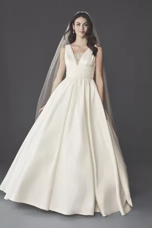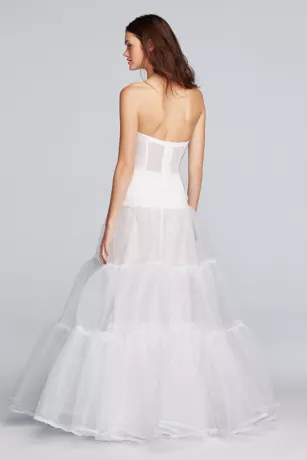 This pull-on slip features a high waist and a beautiful lace-trimmed tulle bottom. This slip was designed to enhance the shape of our ball gowns and prevent them from collapsing between the legs while the bride is walking down the aisle or dancing the night away.