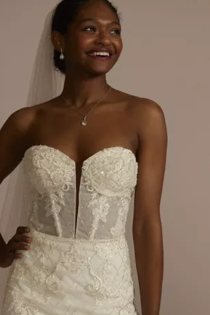 Beaded Brocade Embellished Mermaid Wedding Dress