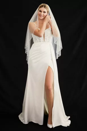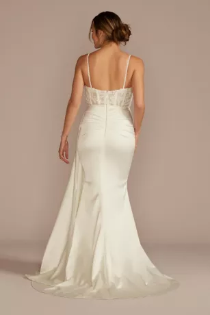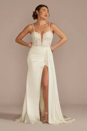 Beaded Corset Bodice Sheath Draped Wedding Dress