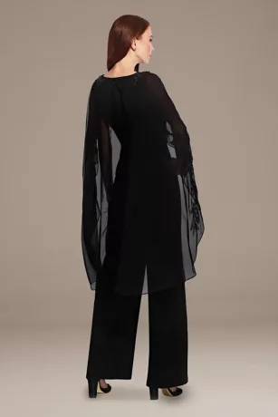 Chiffon And Crepe Jumpsuit With Beaded Cape