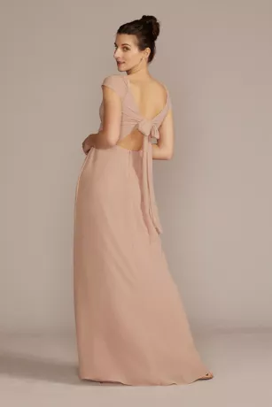 All the prettiest details in one chiffon bridesmaid dress: a sweetheart neckline, adjustable tie back, cap sleeves, and, of course, pockets!