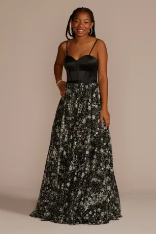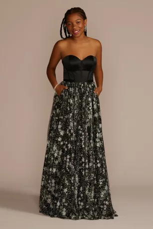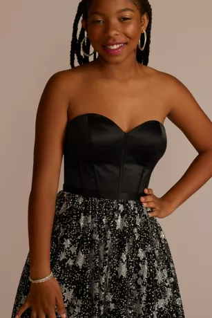 Corset Ball Gown With Star Patterned Glitter Skirt