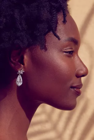 Topped with a cluster of leaf-shaped crystals, these light-catching earrings are finished with shimmering cubic zirconia teardrops.