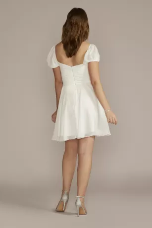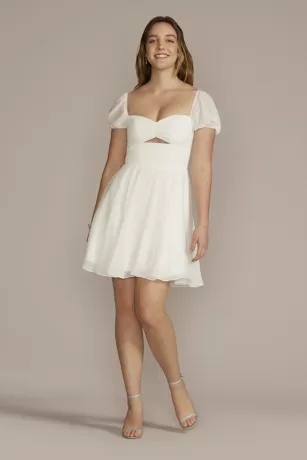 A bodice cutout lends this chiffon mini dress a flirty detail, while the sweetheart neckline and A-line skirt complete the romantic look. Perfect for graduation or summer parties.