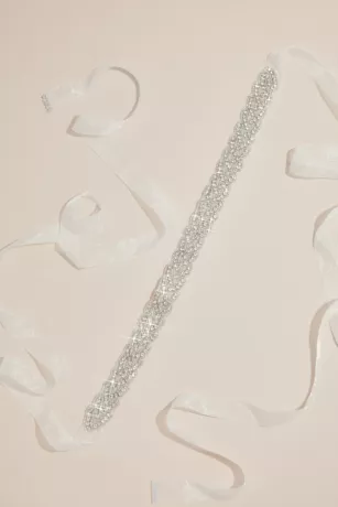 Organza ribbon with a slight sheen beautifully frames the twinkling crystal embellishments of this sparkly sash. We love it for giving wedding dresses and party outfits the perfect finishing touch.