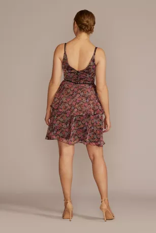 A tiered flounce hem adds a delicate structure to the silhouette of this floral mini, while a beaded waist detail elevates it from casual to cocktail.