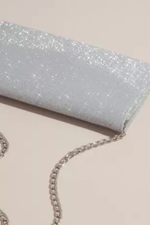 Slip your essentials into this eye-catching glitter envelope clutch, finished with metal trim along the fold.