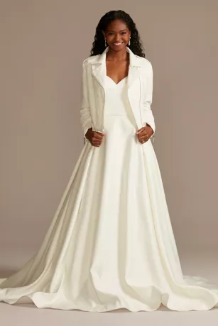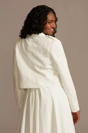 Perfect for the hopeless romantic with an edgy style, this lace moto jacket will carry you from the bachelorette weekend to the ceremony send-off (and beyond!).