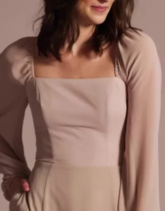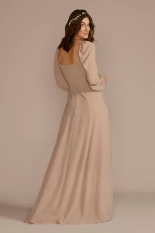 This long-sleeve chiffon bridesmaid dress gives off boho vibes. Elastic bands at the shoulders let you switch to an off-the-shoulder look.