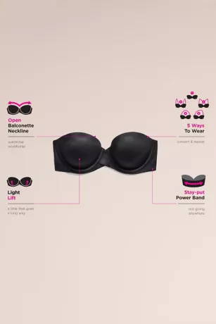 A strapless bra that won’t budge is a must-have for every woman. Featuring the Stay Up Power band to reduce shifting and slipping, and Smartzone cup technology to mold to your shape, this bra is stays exactly were you need it. The convertible style can be worn five ways: strapless, traditional, criss-cross, one shoulder, and halter.