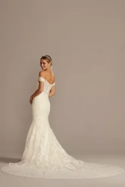 Flaunt your figure in a curve-skimming floral applique sheath wedding dress. A darling sweetheart neckline and sweep train exude modern romance with a sexy sheer back detail. Detachable off-the-shoulder swag sleeves allow you to customize your look to play up your personality.