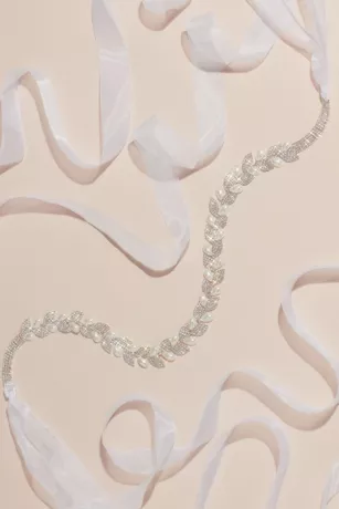 For an elegant, nature-inspired touch to your wedding day look, this sash is essential. Pearls and pave crystals form a strand of laurel leaves, finished with rows of solitaire-cut crystals at each end.
