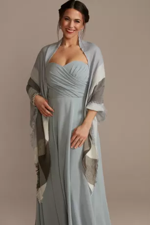 Perfect for a fall wedding or for chilly nights, this triangular plaid wrap shawl adds a rustic-chic touch to bridal party photos and spruces up any outfit after the wedding.
