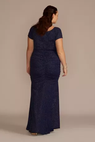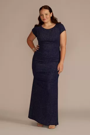 This cap sleeve sheath brings together high-fashion and low-key elements for a one-of-a-kind prom look. A timeless sheath silhouette brings elegance and comfort, while light-catching glitter knit fabric infuses the right amount of youthfulness.