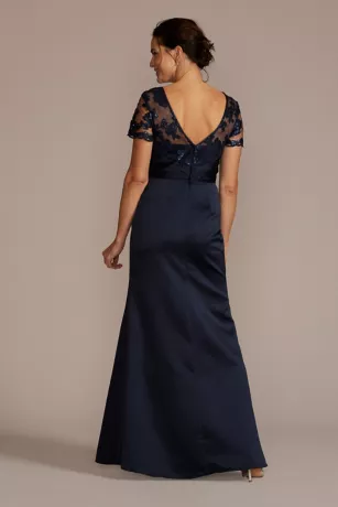 Satin Sheath Gown With Lace Illusion Neck