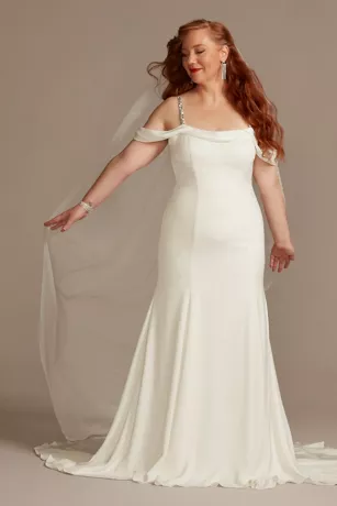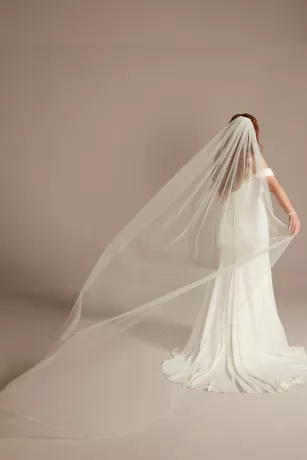 A sprinkling of twinkling beads and luminous pearls around the edge of this glittering tulle cathedral veil looks organic, unplanned, and totally beautiful.