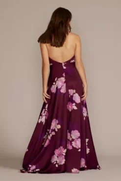 A modern beauty, this short-sleeve dress pairs a sheer overlay with dimensional flowers. A satin sash ties the tea-length look together.