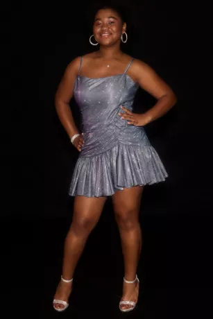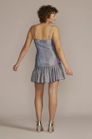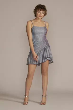 Short Square Neck Metallic Asymmetrical Dress