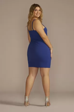 Sleek style defines this short sheath dress made with stretchy crepe fabric to shape your silhouette. A V-neckline begs to be accessorized with your favorite necklace, while a small slit adds a flirty touch to the skirt. The perfect choice for all your upcoming parties!