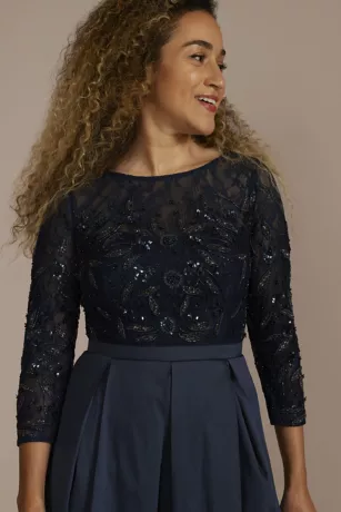 Intricately embroidered with countless beads, this ball gown features an elegant lace bodice that suits every mother of the bride or groom. The full pleated skirt adds volume and even more romance to the big day.