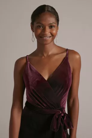 You’ll look oh-so special in this oh-so soft velvet jumpsuit, featuring spaghetti straps and a tie waist.